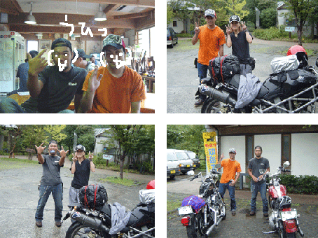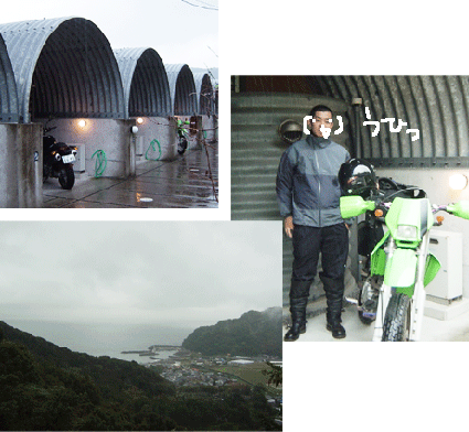 am8:00 ザーーーーっ!!なになに!?Σ (゜Д゜;)何の音!? びっくりして目が覚める。 波板だけの屋根だから、すげ〜雨音が部屋に響き渡ってただけ(ー_ー) 着替えて、表に出ると隣のserowのヒトが出発するところだった。 「おはようございま〜す♪」と声をかけた。 予定通り、和歌山に向かうそうです・・・こんなに大雨の中、気合い入ってる!! 管理棟に行くと昨晩とは違うおばちゃんがお掃除してた。 テレビ付けて貰って「はなまる」見ながら、 とりあえずコインランドリーでお洗濯。 おばちゃんがコーヒー入れて、ロールケーキご馳走してくれた♪ 近くにお店とかもないし、お腹ペコペコだったから、すっごくおいしかった(*´∀`*)ムフーッ 部屋に戻って、モンに荷物積んだり、準備してると 昨晩、あたしの後に到着したKLXのヒトが話しかけてきた。 東京から下道で一日でココまで来たんだって!!Σ (゜Д゜;) 天気予報が今日・明日とも雨だから、もう高速使って帰るって・・・ はぁ(;´Д`)どうしよう・・・あたしも帰ろうかなぁ いやっ!とりあえず、四万十川まで行こう!! am10:00 KLXのヒトと途中の分かれ道まで走って、手を振って バイバ〜イヽ(´ー`)ノ気を付けてね〜・・・って、気を付けるのは、むしろあたし? やばい山道を国道目指して、雨の中・・・ ちょっとブルー やっとの思いで、やばい山道を抜け、四万十川沿いの道R381に出た♪ と思うまもなく大雨・・・ am11:00 道の駅・四万十大正に避難(ΤДΤ) こぢんまりしてて、おばちゃん4人ぐらいでやってる食堂とかある。 「四万十川のり」(川なのに海苔があるんだね)プチサイズをパパみやげに買ったよ。 おばちゃん手作りの「おいなりさん&太巻き」買って、食べよ〜と・・・ ドドドドドドドドーーーーッ!なになに!?Σ (゜Д゜;)なんの音!?(今日2回目w) すげ〜爆音でハーレー2台が入ってきた。 あたしの席にやってきて、「ドカのヒト?」と話しかけてきました。 意気投合して、一緒にご飯を食べました(゜∀゜) お兄さん達は、高知市のヒトで、毎年恒例の四万十川一泊ツーリングの帰りだそうです。 四国おすすめスポットを教えて貰ったりしました。 道後温泉行こうかなって言ったら、 「そりゃ、四国3大ガッカリ名所だね〜」と言われた(ΤДΤ)残りの2つは? 雨が小降りになってきたから、表に出て、写真撮影大会〜。 盛り上がってると、急に太陽が出てきた!! ちゃ〜んすっ!! っつ〜か2時間も遊んじゃったよ!! お兄さん達に見送られて、急いで出発だ!! 足摺岬(←やっぱ「先端」w)に行こうかと思ってたけど、 時間もないし、お兄さん達オススメの「ON&OFF」(←バイク好きオーナーのお店らしい・未確認)に寄って、四国カルスト目指そうかなぁ? R381を走って、お兄さんに言われた橋のとこで曲がろうとしたら、 本当にイイ天気になってきて、四万十川がキレイ〜(*´∀`*) モンを停めて、携帯とデジカメで交互に写真を撮っていると・・・ ふぎゃ〜っΣ (゜Д゜;)財布がないーーーー!! 急いで引き返し、道の駅に戻り、 道の駅のおばちゃんに「財布がないよぉ〜(ΤДΤ)」と泣きつきました。 お客さんは、ほとんど入れ替わってて、 あたしらが座ってたとこには、ご夫婦とそのおばあちゃんが居ました。 もう一度、自分の荷物ひろげて確認してると、道の駅中の人がお財布を探してくれました。 するとご夫婦の奥さんがっ!!「これじゃない?」 売り物のじゃがいもが入ってる箱に入ってたよ!! あまりの感激に奥さんの手を取って、ぶんぶん握手してお礼を言いましたヽ(´ー`)ノ 道の駅中から歓声があがりました!!(まじで!!) (道の駅でこんな一体感を感じたのココだけです!!) 道の駅のおばちゃん達と少しお話しして、皆さんにお礼を言って、再出発♪ しばらく走ってると、先に出たお財布探し当ててくれた奥さんら一行がトコトコと歩いていました。 あたしに気づいて手を振ってくれたので、 ステップに立ち、両手放しでブンブン手を振りましたヽ(゜∀゜)ノ こんなトラブル(もとい、ただの不注意w)があっても、 素敵な出会いになる。 本当に旅って(・∀・)イイ!!ね♪ (↑後日、友達に「前向き過ぎ!ちょっとは学習しろ!」と怒られたけど(゚ε゚)キニシナイ!) pm3:00 道の駅・虹の森公園まつの(結構デカイ)までやってきた。ちょっと休憩。 観光バスの運転手のおじさんが話しかけてきた。 おじさんは、四国カルストから下って来たんだって。 ここから上は霧がすごいからバイクは危ないって・・・(´Д⊂ おじさんと一緒に地図を見ながら、ルートを再検討♪ 目的地は佐田岬(←どうしても「先端」w)に決定〜(゜∀゜) 道を教えて貰って出発。 途中で、FOMA電波を探し、またしても適当に宿を探す。 佐田岬のさきっちょにあるライダーホステルWalkOnに電話してみると留守電。 「相部屋です。今日の予約はありません。兼業の為、仕事から戻ったら折り返します。7時までには連絡します。」だって。 ・・・まぁいいか 「とりあえず向かいま〜す。」とメッセージ残して佐田岬へ♪ pm5:00 佐田岬半島の入り