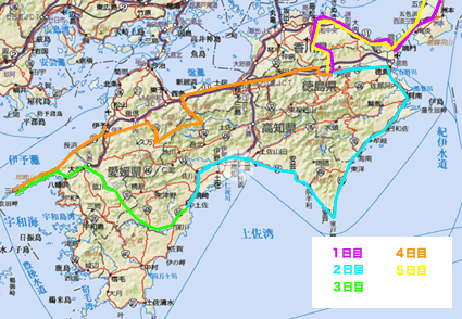 am6:00 5時くらいからウトウトして結局、寝れずに起きちゃった。(*´∀`*) 叔父さんと叔母さんも起きてきた。 「叔父さん、ワシもう帰るけ出るわぁ〜。メシいらん。」 「なっ、なにをぬかしよるんじゃっ!こんな朝早うからっ!ヽ(`Д´)ノ」 叔父さん、叔母さん、あたしと一緒に泊まった従兄の子供らが見送ってくれた。 バイクに跨って、エンジンかけ、出発。 バックミラーに、子供ら2人が手を振りながら走って追いかけてるのが映ってる。 ・・・ありがとう。皆さん。 思い立って、適当に来てみたけど、ほんとに来てよかった。 am8:00 叔父さんの家を出発して、県道12/14を鳴門に向かって走る。 途中、コンビニで休憩して、サンドイッチとコーヒーを飲みつつ、「ツーリングまっぷる」を眺める。 (ノ゜Д゜)(いいのか?このまま帰って?) 「ツーリングまっぷる」の中のヒトがそう呟いた。・・・気がする。 (゜Д゜;)で、でもぉ〜今日は、まっすぐ帰っても700km近く走らなきゃ・・・ ・・・まぁいいか♪うひっ(゜∀゜) とりあえず、行きに通った鳴門スカイラインを走りたかったので、遠回りしてから、 神戸淡路道・鳴門北ICから高速に乗った。 am9:30 鳴門大橋を渡った所にあるSAの展望台にのぼると 旦那さんが鳴門大橋をバックに奥さんの写真を撮っていた。 「撮りましょうか?」声をかけると 旦那さんは恥ずかしそうに「いやいや、いいんですよぉ。」 逆に写真を撮って貰い、少しお話しした。 夫婦で九州から四国を回って来たんだって。 水道業を営む旦那さんは、震災の復興にボランティアで参加し、5年ぐらい前に、その時の仲間と訪れた淡路を奥さんに見せてあげに来たんだって。 明石大橋まで行って、Uターンするというので、 明石大橋手前のSAは上り/下り行き来できて、Uターン可ですよ。とプチ情報を披露しながら、一緒に展望台を下りた。 出発する2人を見送り、またしても「ツーリングまっぷる」を眺め、 せっかくだから淡路島走ろ〜っと高速を下りて、播磨灘側の海沿いを走った。 すげ〜天気(・∀・)イイ!!し、最高に気持ち(・∀・)イイ!! 途中、赤いMonsterとすれ違った!!なんだか嬉しい(*´∀`*) am11:00 道沿いに小さな神社があったから、立ち寄ってみた♪ 瀬戸内海キレイ〜(*´∀`*)ムフーッ ![]() しばらく走ると・・・意外とデカイな淡路島(ー_ー) と気づき、北淡ICから再び、高速にのる。 am12:30 明石大橋手前の淡路SAで、この旅でなくした携帯ストラップのMonsterの代わりに、 徳島限定・阿波踊りドラえもんを購入。(←ココから「どこでもドラ」コレクション♪) pm3:00 人間やれば出来るね。名古屋に着いたよ。残り半分じゃん(^3^)余裕〜♪ 余裕が出たので、行きに泊めてもらったJくんのとこに寄り、お土産を渡しました。 まぁ、ここからが地獄でしたけど・・・(ΤДΤ) pm4:30 浜名湖 pm6:30 御殿場 pm8:00 自宅着 誰ともしゃべる気力もなく、ただただ走り続けました(ΤДΤ) 叔父さんの家を出発 →R192→県道12・14で土成まで →R318で西山まで(緑がキレイで、たらいうどん屋がいっぱい・・・朝早くて開いてなかったけど) →県道40で引田まで →R11で鳴門まで →鳴門スカイライン(行きも通ったけど楽しい) →神戸淡路鳴門自動車道・鳴門北ICー淡路島南IC →県道25・31淡路サンセットライン(瀬戸内海を眺めながら海沿いを走る) →神戸淡路鳴門自動車道・北淡ICー東名・豊田東IC →Jくんの現場まで →東名・豊田東ICー東京IC →環八で自宅まで 走行距離 750km 高速代 13800円 ガス代 3605円(3回分) おみやげ 850円 他 1843円(サンドイッチ/コーヒー/タバコ/ドラえもん/アイスクリーム/お茶他) ★★★★★★四国ツーリングのまとめ★★★★★★ 総走行距離 2,341km 高速代 31,150円 ガス代 14,240円 宿代(2泊分) 6 ,250円 おみやげ 5,770円 他 10,838円 合計 68,248円 PR | |